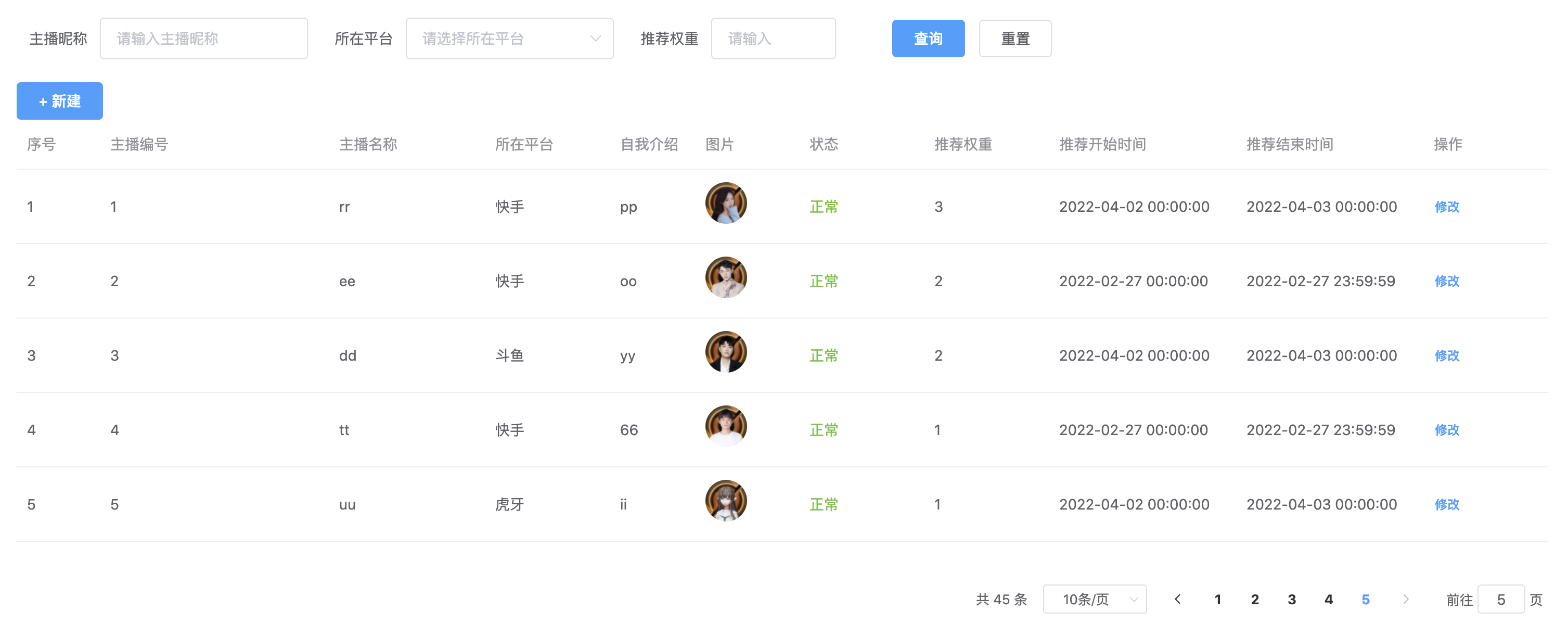 做过几个管理端需求,很多页面都差不多,上面是几个搜索框,Input或者Select类型,中间一个新建按钮,下面一个Table,最下面是Table的分页,类似下图:
