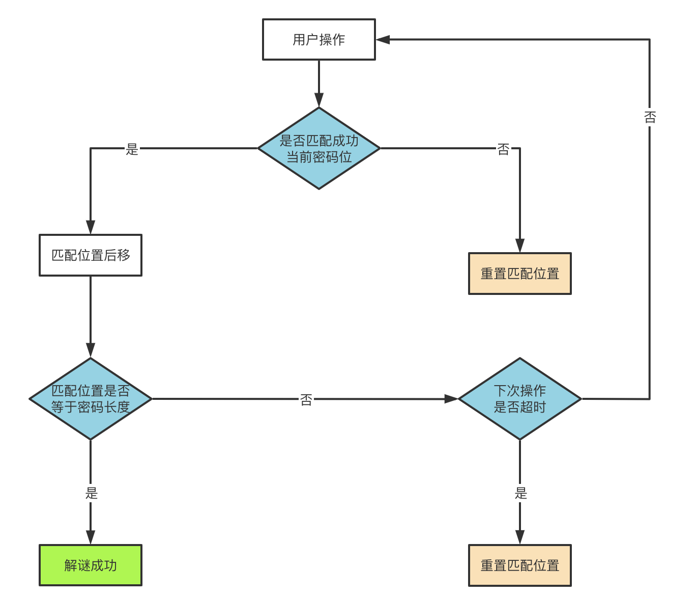 这里的细节点就是维护密码数组和当前正在匹配的位置,流程图如下: