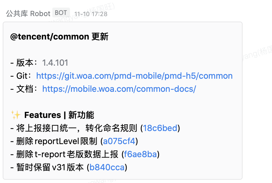- 公共库自动打Tag、自动升版本,并发送changelog到企业微信群中