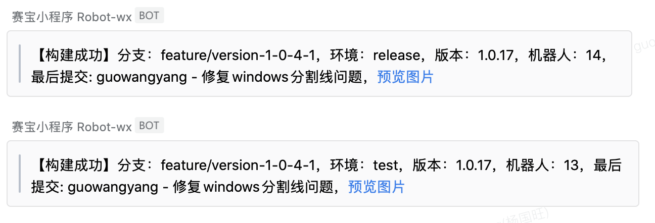 - 借助小程序ci,对多个环境用不同的机器人,这样就不会覆盖了。